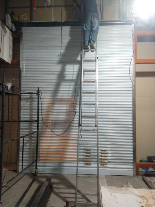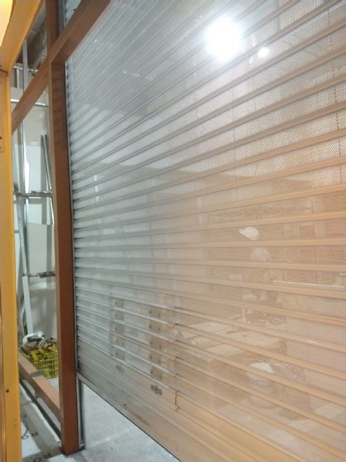 Instalação da Porta de Aço de Enrolar Automática.porta de Aço Micro Perfurada Com Pintura Eletrostática Na Cor Branca.loja No Shopping Em Barueri.