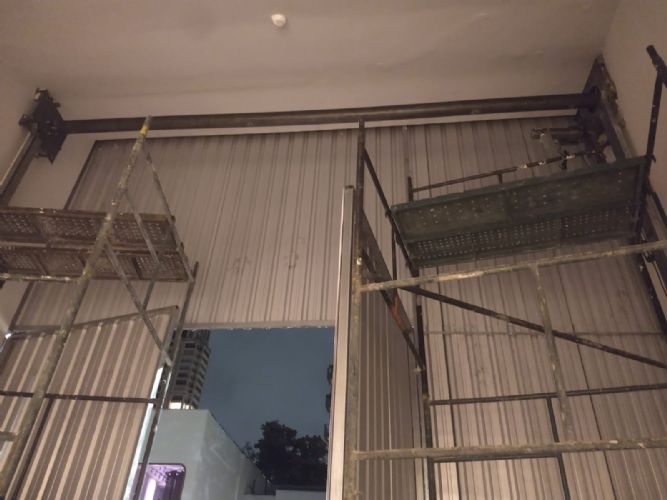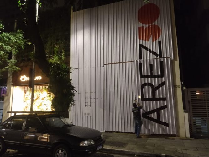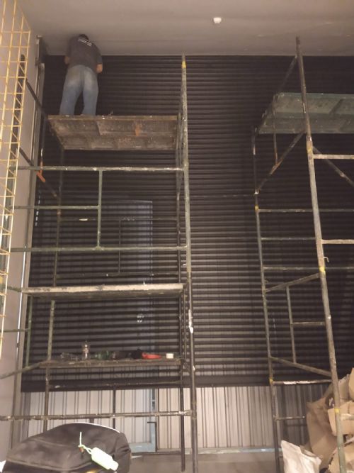 Instalação da Porta de Aço de Enrolar Automática.porta de Aço Micro Perfurada Com Pintura Eletrostática Na Cor Preta.loja Na Rua Oscar Freire.